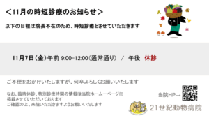 (空き状況により当日のご予約も可能ですが、手術中、往診中は電話受付ができない場合がございます。前日までのご予約をお勧め致します。)
